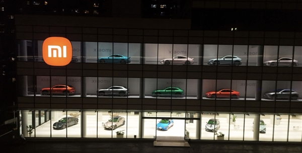 这家门店位于杭州拱墅区石祥西路,整栋建筑采用通透的玻璃设计,白天阳光透过幕墙洒进室内,不同颜色的SU7车型在白色展台上一字排开,从高空俯瞰,整整齐齐的车辆就像排列在展示架上的模型车,色彩丰富又充满秩序感。