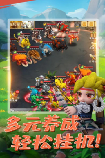 游戏主打战宠生态养成体系,提供鹰隼、三角龙、甲龙等20+可驯服远古生物,每只具备独立成长路径、技能树与羁绊机制。玩家可组建最多5只战宠的协同编队,挑战高难度副本Boss。地图设计还原第四纪冰川期至全新世初期的植被演替特征,森林、沼泽、火山地貌交替呈现,视觉层次丰富。PVP跨服竞技场支持实时组队匹配,强化社交协作深度。
