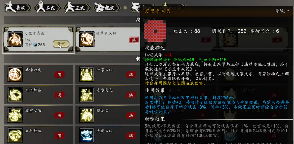 成功击败慕迟后,女帅留书支线正式完结。吕仙儿将领悟专属绝学【万里平戎策】,该技能不仅大幅提升其群体压制与持续输出能力,更标志其人物线完成重要传承仪式。从谭城初遇、甘泉历练,至最终承接女帅意志,整段叙事逻辑严密,武学成长与角色塑造高度统一。