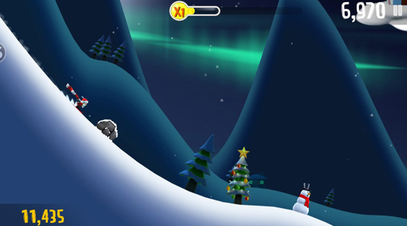 核心玩法围绕雪崩逃生展开,玩家操控角色在持续加速的雪流中保持平衡并规避障碍。基础操作仅需单点跳跃与长按滑行,但进阶技巧涉及坡道腾空转向、动物坐骑切换(如老鹰提供短暂滞空)及地形预判。场景涵盖针叶林带、阿尔卑斯风格小镇、冰川裂隙与火山岩浆坡等七类地貌,每类地形对应特定物理参数,影响滑行速度、碰撞判定与道具刷新逻辑。