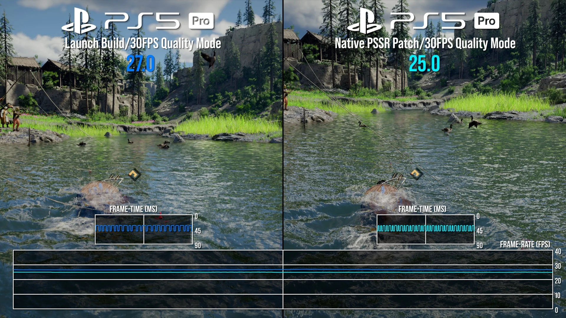 当然,画质的提升并不是完全没有代价。启用PSSR并结合新的抗锯齿方案后,会带来一定的性能开销。整体来看,帧率大约会下降2帧左右,每帧渲染时间增加约3毫秒。在大多数情况下,由于游戏本身锁定在30fps,这部分性能损耗不太容易被察觉,但在一些压力较大的场景中,帧率还是有可能跌破30fps,尤其是在启用原生AA模式之后,对性能的压力会更加明显。