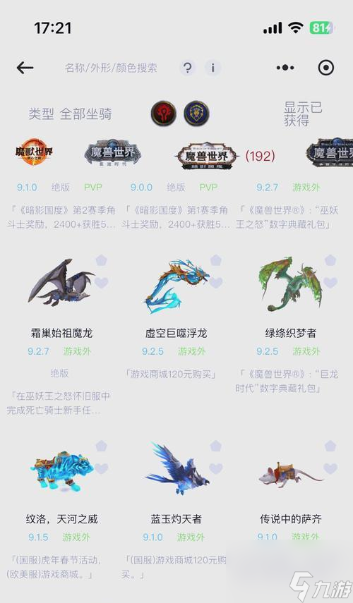 玩家也可以在拍卖行中寻找其他玩家出售的坐骑。价格可能会根据坐骑的稀有程度而有所差异。