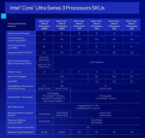 先说符合预期的,能效提升大、核显性能强,对应的处理器型号有5款,包括4款Ultra X和1款Ultra 5,