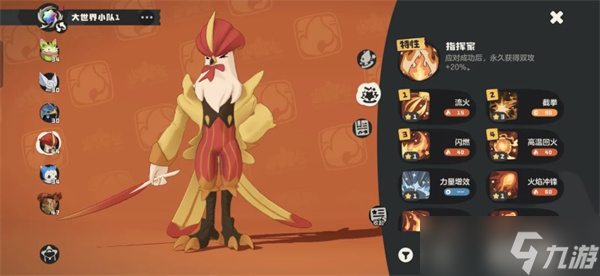 然后这里注意【迪莫】的技能搭配。迪莫可以选择带草技能或者水技能,光技能也可以,但别带火技能了,因为阵容已经有两个火属性了,需要补充其他属性的打击面。迪莫的技能池很丰富,根据你缺少的属性来搭配,确保阵容的覆盖面完整。