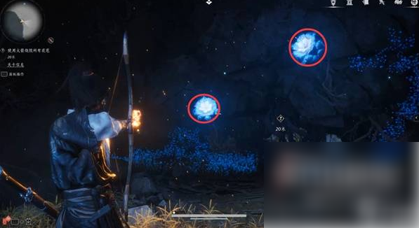 要清理水车上的藤蔓,需要射三朵花,两朵很容易发现,第三朵在下面,需要先操作转轮后才能通过木杆下的缝隙射到。