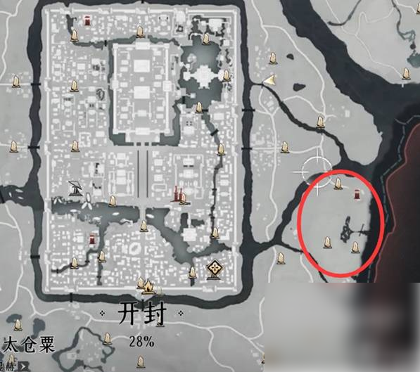 郑鄂的任务后续,聆杏村在开封城东面,在下图位置找到白色杏花树下的屋子,把手札放进屋子里,并发现这里就是翟煦的家。