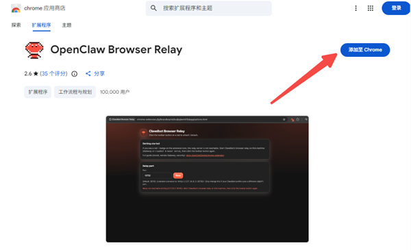 在Chrome的应用商店中搜索“openclaw-browser-relay”并进行安装。