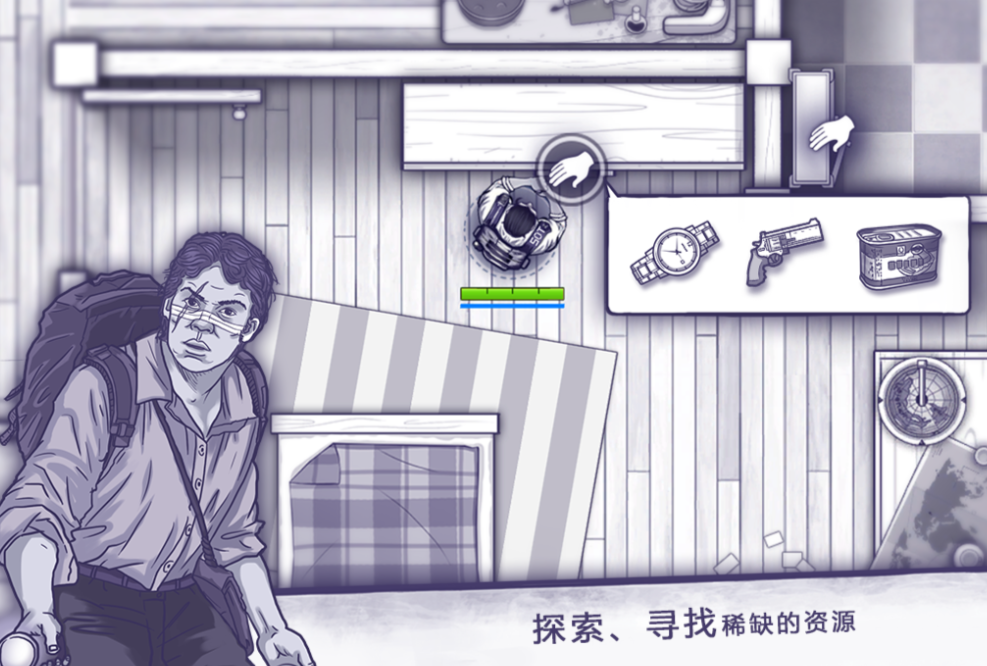 一款硬核向单机生存沙盒作品,采用俯视角上帝视角呈现废土世界。玩家需在辐射污染、物资短缺与感染者威胁交织的环境中维系生命体征,通过采集、合成、建造、潜行等方式逐步升级装备与据点。界面采用极简黑白灰配色方案,强化末日荒芜氛围;操作以触控指令为主,支持自定义快捷栏与动作序列;剧情采用碎片化叙事手法嵌入环境细节中,玩家可通过探索逐步拼合世界观全貌。