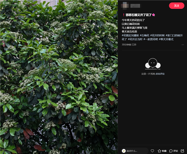 石楠花的花期相对较短,一般持续约15至20天,主要集中在4月初至5月初。随着花期结束,气味也会迅速减弱直至消失。