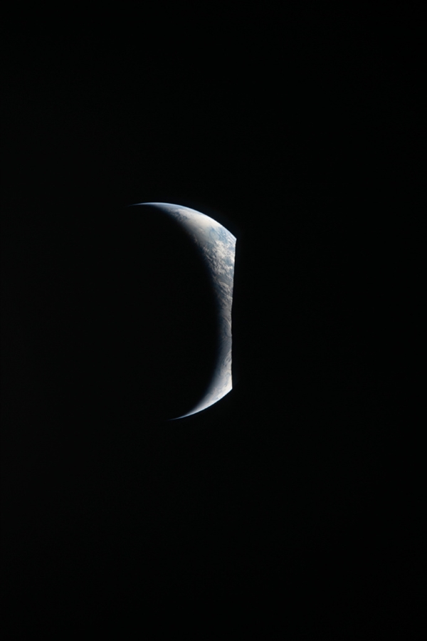 这张照片拍于4月6日傍晚,是宇航员从猎户座飞船的窗口拍下来的。镜