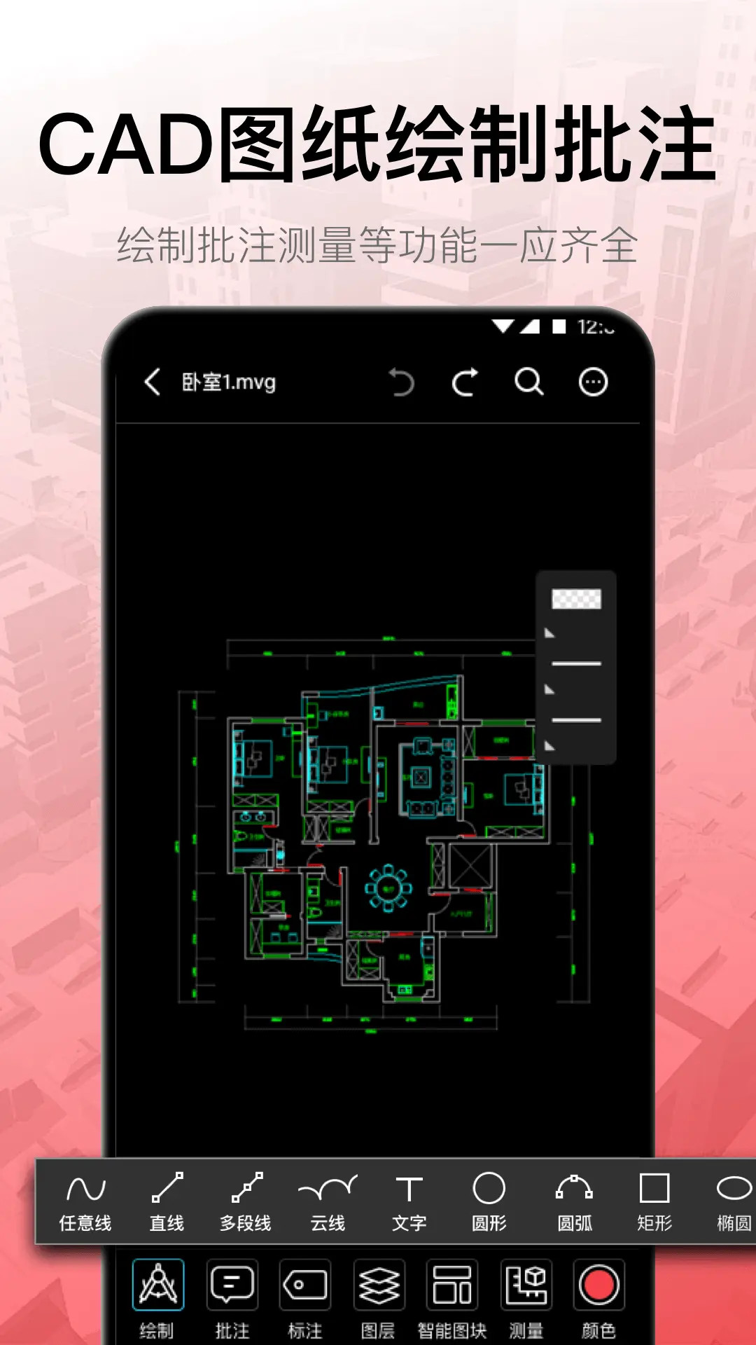 面向建筑与结构设计人员优化的移动端CAD解决方案,具备高兼容性图纸解析引擎,可稳定打开微信、钉钉等平台传输的各类CAD文件,杜绝乱码与失真。集成测量标尺、云线批注、图元检索、图层管理等功能,并支持按项目、专业、版本自动归类存储,便于团队协同查阅与版本追溯。