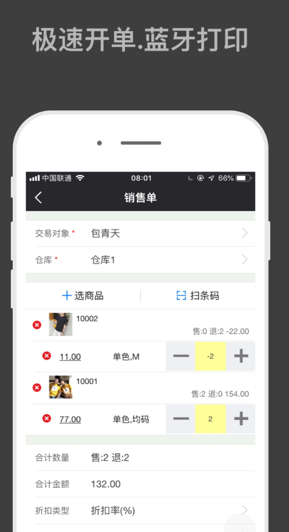 君涛科技面向细分行业深度打磨,重点服务服装鞋帽、茶叶、数码配件等SKU结构复杂的业态。支持颜色、尺码、规格、容量、型号五大属性自由组合定义,灵活应对多变的商品维度。开单环节采用可视化规格选择器,避免人为选错导致发错货;整体操作节奏紧凑,销售、退货、出入库单据均可在10秒内完成。集成蓝牙便携打印能力,支持条码标签、小票、吊牌一键输出,并可生成带支付链接的定制化二维码,打通线下交易闭环。