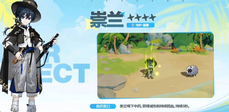 崇来的技能组合强调节奏把控与战术协同。主动大招【乘风破浪】表现为角色跃起后重踏地面,生成环形水坑区域,对范围内敌人造成伤害并施加“冰缓”状态,持续降低目标移速与攻击频率。该控制效果为队友创造稳定输出窗口,在即时制战斗环境中尤为关键。被动小技能【良药苦口】则提供生存向支援:饮用特制中药后,自身获得持续5秒的生命恢复与减伤效果,显著提升前排容错率与续航能力。