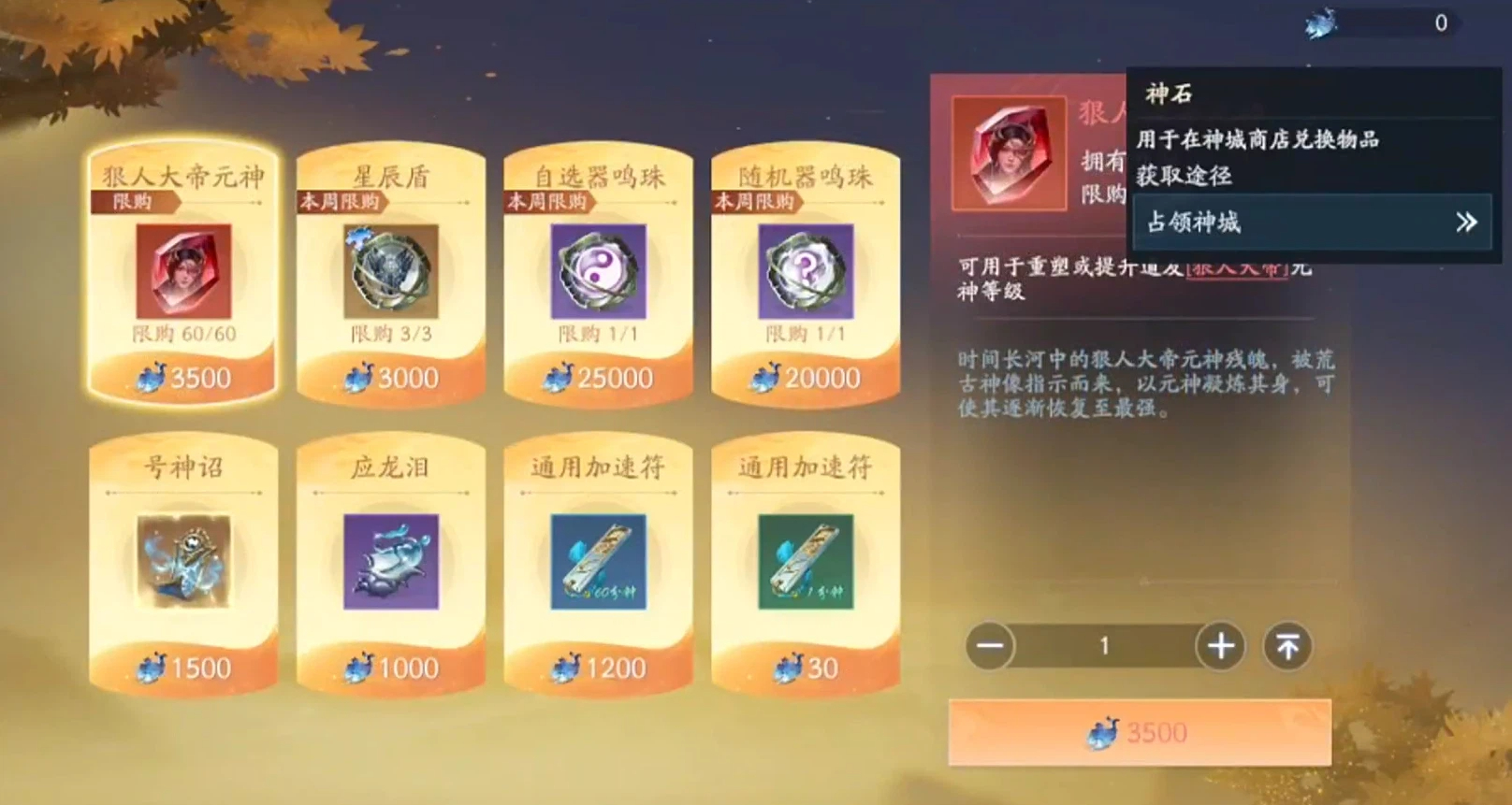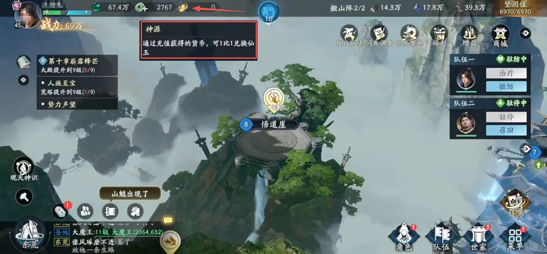 当然,游戏中还有其他常规货币——灵石,灵石是一种消耗货币且用途广泛,同时获取方式非常多,基本不会紧缺。最后一种常规货币就是神源了,它是一种充值货币。