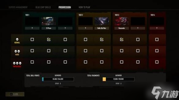 难度:普通逐步解锁区域,困难/极难全区开放,需全队买升级晶片才能提升难度。