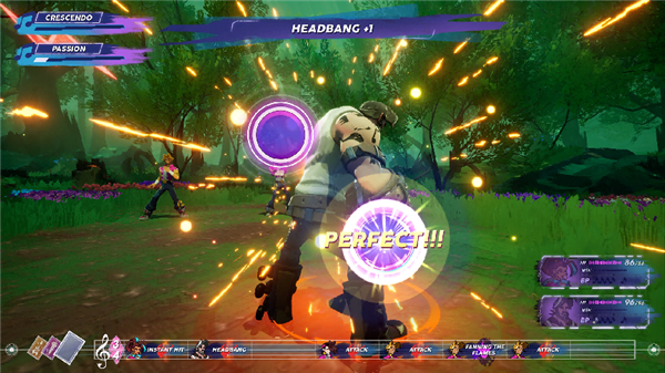 对于一款音乐题材游戏而言,视听体验是重中之重,而《卓乐新声》在这方面交出了诚意满满的答卷。游戏拥有完整的电影级音乐演出,涵盖摇滚、电子、金属等多种风格,所有曲目均由游戏内主要角色“演绎”,旋律抓耳且与场景、剧情高度契合:如在摇滚之都杜兰帝斯,背景音乐充满激昂的吉他riff;在电子舞曲之城露米纳,节奏则变得轻快灵动,让玩家在探索过程中也能享受一场听觉盛宴。