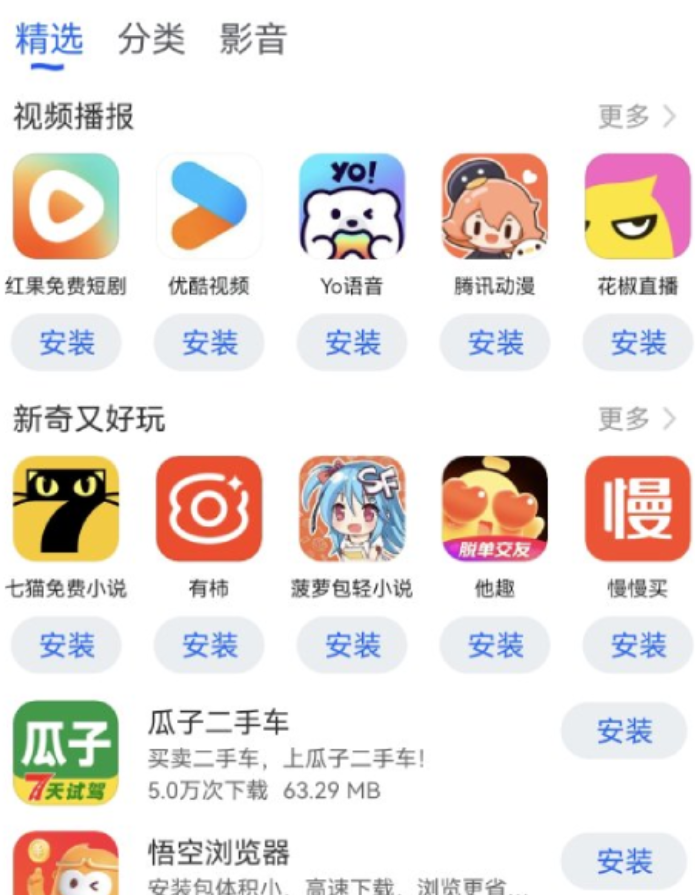 以轻量化设计与高稳定性见长,界面无动态特效、无信息流推荐,视觉结构干净有序,降低用户认知负荷。应用审核标准聚焦权限最小化原则,禁止非必要后台唤醒与异常网络请求,杜绝预装捆绑及诱导下载行为。虽资源总量不及头部平台,但核心品类如即时通讯、在线课程、音乐播放器等覆盖完整,安装后运行流畅,低内存占用,不触发后台流量消耗,适合对系统纯净度与续航表现有较高要求的用户群体。