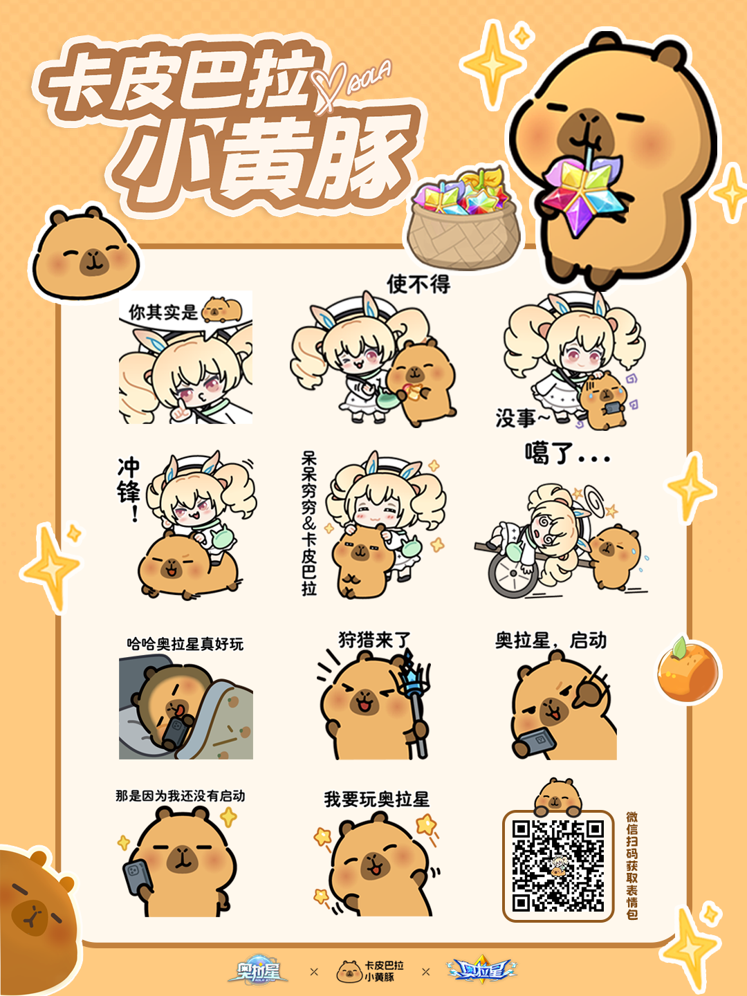 『卡皮巴拉小黄豚』×『奥拉星』联动表情包现已上架微信表情包平台。