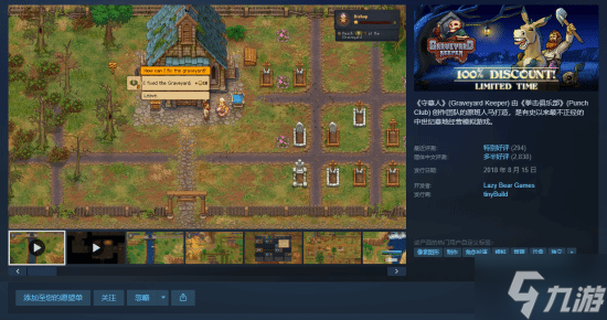 近日,由Lazy Bear Games制作的模拟经营游戏《守墓人》现已开启Steam喜加一,游戏国区售价76元,截至4月14日凌晨1:00。