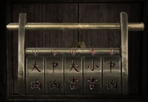 3、把获得的旗子拿来开那个门,门打开之后继续收集东西,有一个锁是大凶之内的,玩家们需要按照手册中的大吉大凶的对应,按照图案的提示来打开,可以看见一个招财猫。