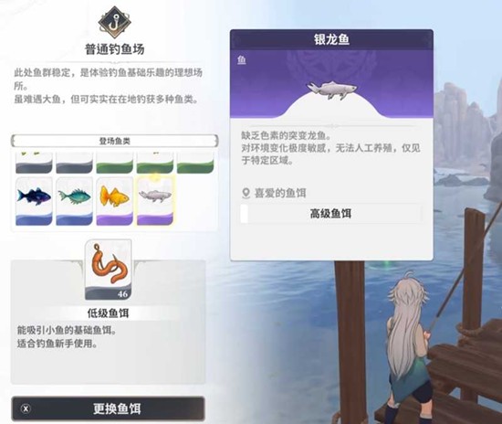 银龙鱼生活在荒原边缘的沿海钓鱼场,位于大陆的西北角。那里遍布岩石和陡峭的海崖,海面风浪较大。只有在晴朗天气的正午到下午三点之间,将鱼饵抛到距离海岸线五十米以内的浪涌区域,才有机会遇到它。银龙鱼全身覆盖着银白色的鳞片,在阳光下非常显眼。它是制作“深海星纹护符”等高级装备的关键材料,掉落率不高,建议使用“闪光诱饵”来增加咬钩的几率。