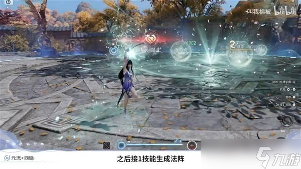 西施起手,先用2技能丢发球,接着3技能强化自身,然后在放一次2技能,之后接一技能生成法阵。