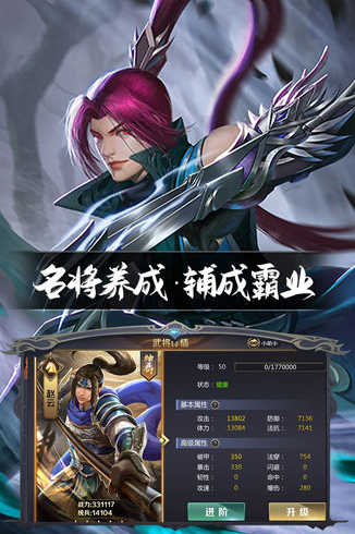 正版授权三国动作手游,武将培养体系明确:每位可操控武将等级上限为五十级,每级晋升均同步强化生命、攻击、防御、暴击等核心属性。战役关卡复刻经典历史战役,结合无双割草式连招手感与攻城略地战略维度,武器系统含长枪、双戟、弓弩等十余种类型,坐骑模块支持属性加成与外观定制,整体画面表现达到主流旗舰水准。