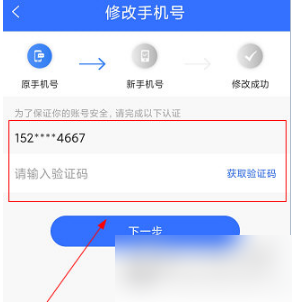 4、获取当前手机号的验证码,根据提示完成操作就可以更换了。