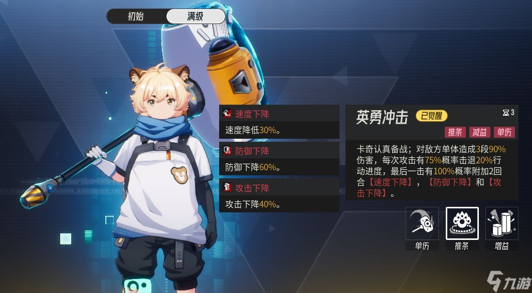 每次攻击由之前的65%概率提升至75%概率击退目标20%行动进度