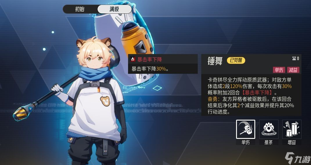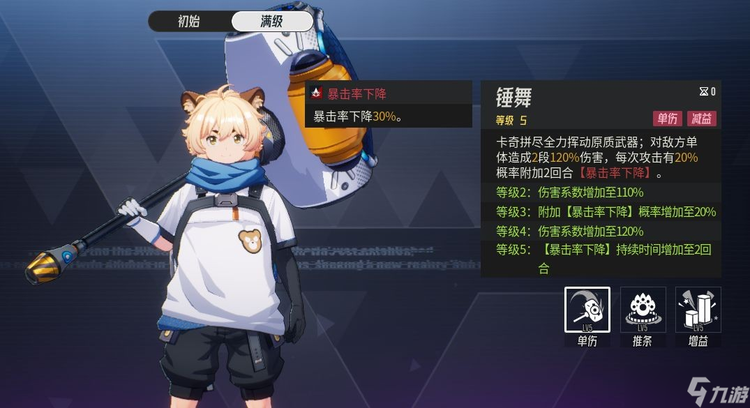每次攻击由之前的20%概率提升至30%概率附加2回合【暴击率下降】