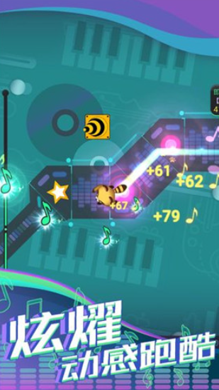 本作以“节奏即操作指令”为设计逻辑,角色自动匀速前进,玩家仅需在音符触发点完成单点触控,即可完成对应动作。障碍物出现时机严格匹配BPM变化,每首曲目拥有独立节奏谱面,关卡推进中节拍型态持续演进,如四分音符对应基础跳跃、十六分音符组合触发连续闪避。界面简洁无冗余UI,响应延迟低于80ms,适配全年龄段用户,零学习成本即可进入沉浸状态。
