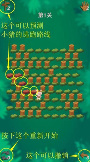 本作以策略围堵为核心机制,玩家需通过移动木桩封锁路径,将随机奔跑的小猪逐一围困。关卡设计由浅入深,从基础布局逐步过渡至多变量动态场景,兼顾操作精度与空间预判能力训练。新手引导系统采用分步图解+实时反馈方式,确保零基础用户也能快速掌握核心规则。