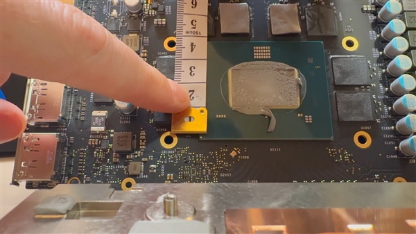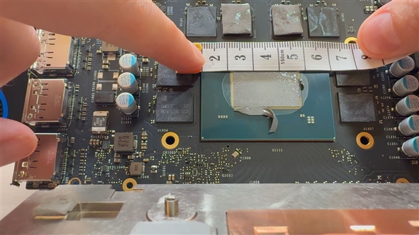 Tech Guy Beau拆解了一块锐炫Pro B70,测量发现BMG-G31 GPU尺寸约为25x15毫米,也就是面积375平方毫米。