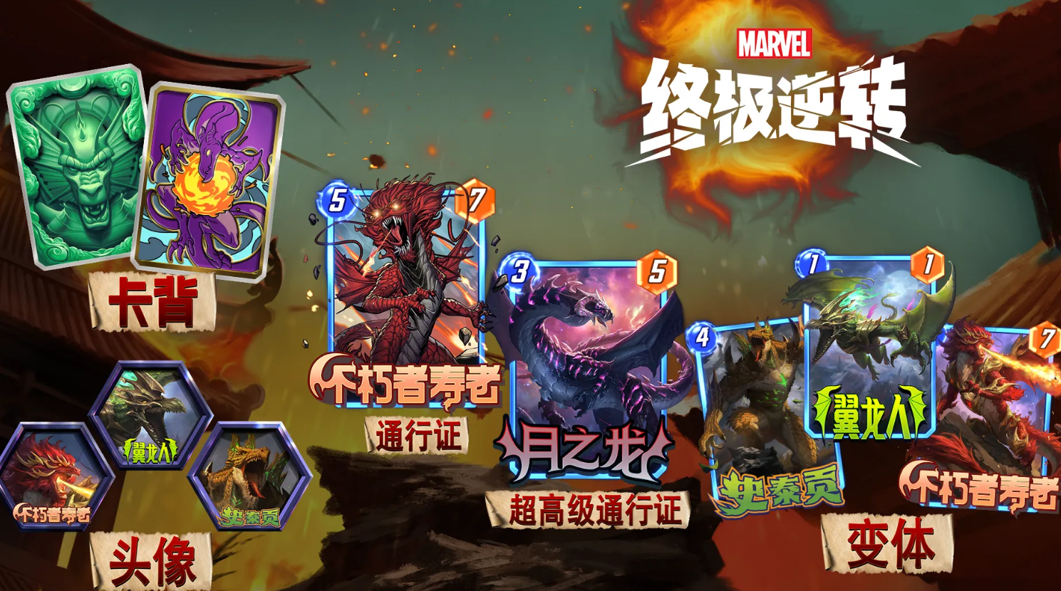 超高级通行证:如果有条件的玩家是可以去升级的,因为能额外得到月之龙变体,让各位在成功解锁变体时也能同步得到相关基础卡;未能去购买该通行证的童鞋也不用担心,因此还可通过合成或SNAPPACKS获取月之龙的基础卡。