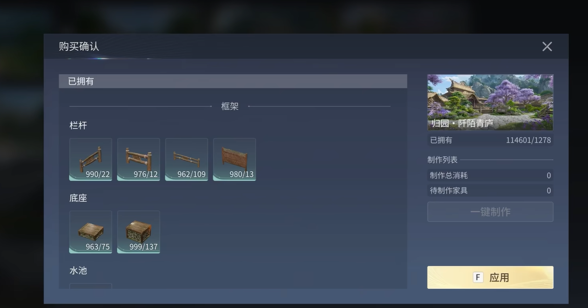 家园里的建造自由度挺高的,家具可以360度转,材质也能换,中式古风和现代简约都能混着用。一些玩家甚至会把野外看到的建筑,照着复刻出来,放在自己地里。炼丹房、食物制作台、储物区这些功能性建筑也都能盖,不只是摆好看的。