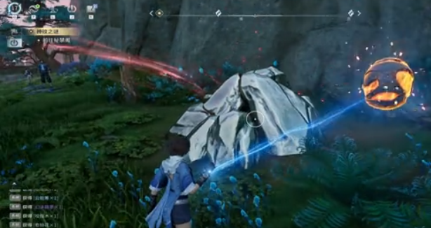 本关卡唯一难点在于巨石清除机制——需严格依赖冷热交替原理实现物理崩解。现场地面即置有两类关键道具:冰冻果与燃烧果,拾取无前置条件,无需战斗或额外探索。操作流程高度线性:首先进入道具栏确认已持有两种果实;随后使用数字键快捷装备燃烧果并投掷命中岩石,使其表面持续燃烧、进入受热膨胀阶段;待火焰稳定约2秒后,立即切换至冰冻果并再次投掷,利用骤冷引发热胀冷缩效应,使岩石迅速灰化、结构脆化。