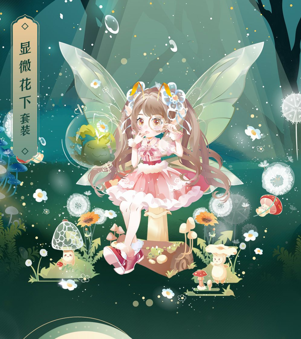 服装获取路径多元且层次分明:主线剧情推进、种花养成任务、限时活动挑战均可解锁免费套装;同时,游戏亦提供设计考究的付费系列,兼顾收藏价值与审美深度。例如“凤眼莲心”套装融合东方古典意象,以水墨晕染与流云纹样诠释温婉气韵;“显微花下”则从植物微观结构汲取灵感,将花蕊脉络、晶莹露珠转化为服饰纹理,营造出自然与幻想交织的独特氛围。