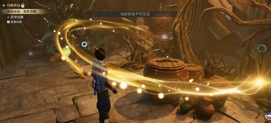 第三枚钥匙碎片需返回一层平台与指定NPC再次对话,触发Boss战——丰华硕木。击败该首领后拾取最后一枚钥匙碎片。随后携全部三枚碎片前往石门前完成合成,开启通道。深入内部后触碰酒坛,待周围敌对单位自然消失,即可获得关键道具「唤灵盘」,正式达成鲲游任务成就。