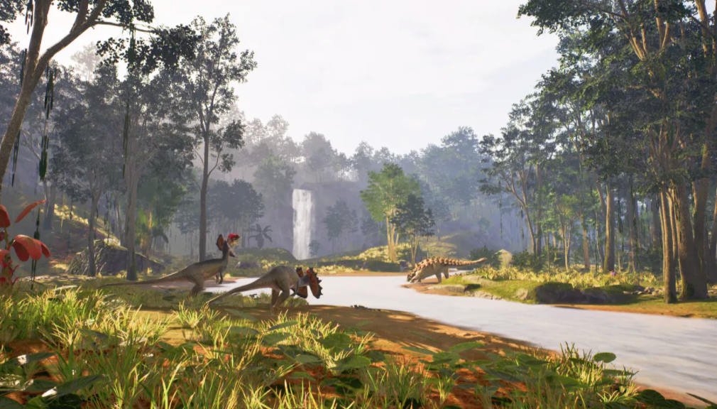 初期地图限定于紧凑型森林区域,侧重基础生存机制训练;随进程推进,地形复杂度显著提升,涵盖沼泽、火山带、峡谷及密林等多种生态单元。玩家需结合恐龙生理特性(如耐热性、攀爬能力、夜视水平)主动筛选巢穴位置,强化环境适应力。游戏同步支持单人沉浸式体验与多人协作模式,团队可依成员属性分工执行侦查、采集、防御与繁衍任务。