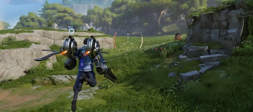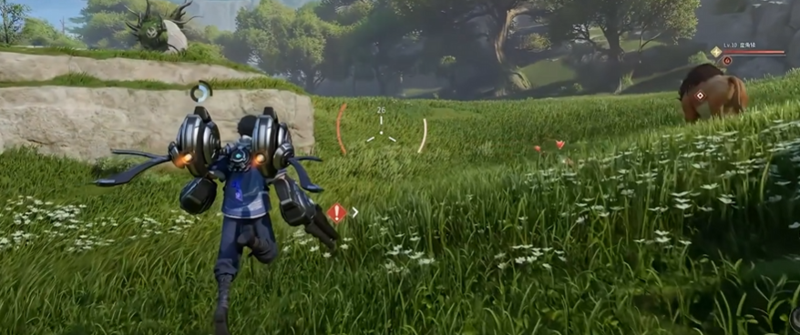 蒙犽的被动【共鸣】赋予其独有位移机制——处于战斗状态时跳跃可触发飞行器升空,脱离战斗后跳跃则实现闪避式腾空。该状态可持续移动并规避部分地面技能,但会持续消耗体力条,需合理规划使用时机,避免陷入无体力导致的机动真空期。