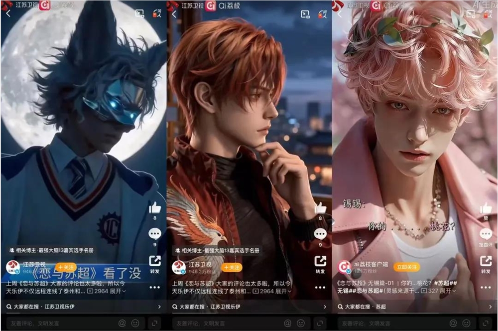 更有十三支球队的队徽刚一官宣,网友们就开始找不同、评设计、玩谐音梗;AI短剧《恋与苏超》把十三座城市拟人成帅气男主,直接把赛事变成了“恋爱综艺”;宿迁球迷喊话官方文旅,把何润东请来当代言人……