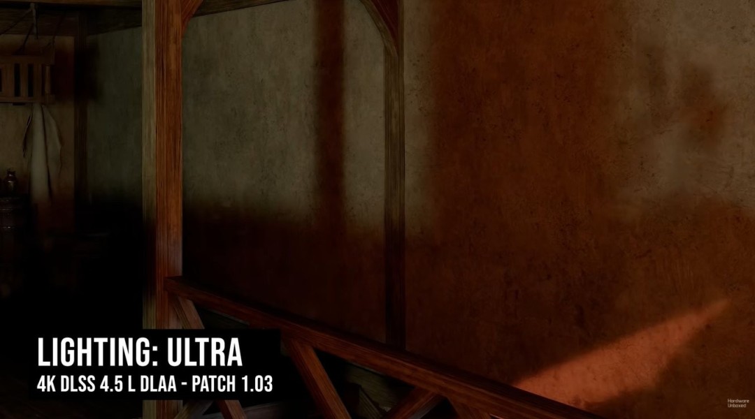 DLSS 4.5缩放系统在更新后运行更为稳定:游戏首发时该功能会导致画面严重闪烁。但Hardware Unboxed的专家认为,即便在当前状态下,该技术仍不及DLSS 4.0版本。