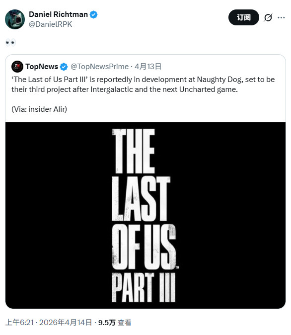 HBO剧集《最后的生还者》第三季正在拍摄中,与此同时,多位爆料者称,顽皮狗工作室终于开始开发《最后的生还者第三部》,毫无疑问,仍旧由Neil Druckmann掌舵。