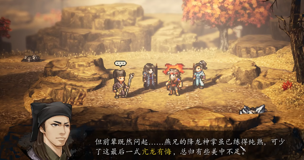 另有一条替代路径:若玩家已完整完成丐帮主线及全部关联支线任务,且李元兴、燕未还好感度均高于80,并处于当前出战队伍中,则可直接前往卧丘山篝火处,无需击杀老鹰与野羊,即可触发专属任务链,最终同样获得「亢龙有悔」。两种方式效果一致,可根据当前任务进度灵活选择。