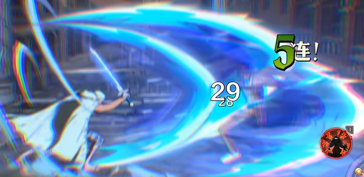 此外,强化普攻命中目标后可降低自身精力消耗速率;若在命中敌人后的任意攻击后摇期间保持静止,即可触发“血振”动作,恢复一定精力值。雷利的普攻共四段:第一段为拔剑上挑,第二段为借势下劈,第三段为交叉连斩并生成四道剑波,第四段以直刺终结连招。