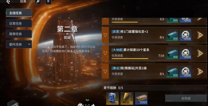 开启阶段主线任务就是核心指引。需要跟随着主线推进,可以帮助大家熟悉游戏的基础操作,还能解锁船舰的改造。这就是提升战斗力的关键,在改造战舰的时,不要盲目的升级所有的部件,优先把所有的资源都放入到护盾还有主武器上。护盾就是战舰的生存屏障,可以大幅度的降低敌方炮火带来的伤害,保证续航的能力。主武器则是核心的输出来源,在升级之后就可以显著的提升战斗力,迅速的打败敌人。