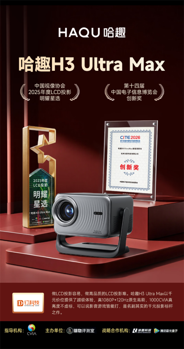 综上,2026AI硬件产业创新大会在深圳举办,发布产业报告,揭晓创新奖,哈趣H3ultramax投影仪凭借实力上榜。