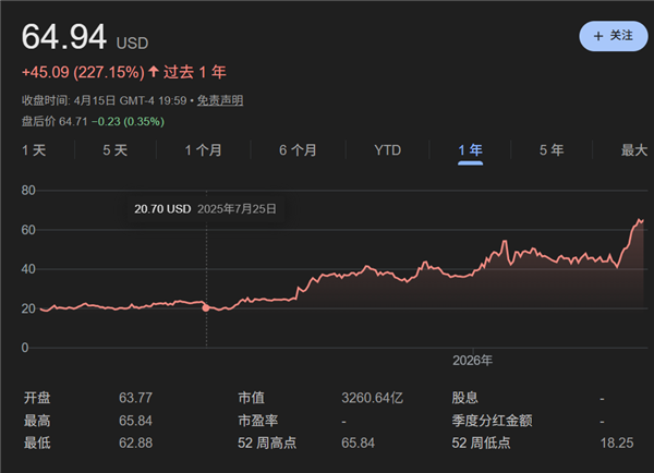 4月16日消息,最近几年,如果要选AI时代最为失落的公司,Intel显然是能入局的,去年市值一度跌破1000亿美元,然而现在他们的股价做到了一年三倍。