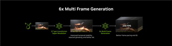 DLSS 4.5技术全新6倍多帧生成与动态多帧生成已正式发布,凭借第二代 Transformer 模型的出色图像稳定性,结合帧率控制与画质的优化,DLSS 4.5技术可为每个渲染帧额外生成多达5帧,实现最高6倍的帧率提升!