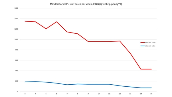 TechEpiphany长期跟踪Mindfactory、Amazon等多家零售商的CPU、GPU和主板周销量数据,其10年数据积累让这一判断颇具分量。